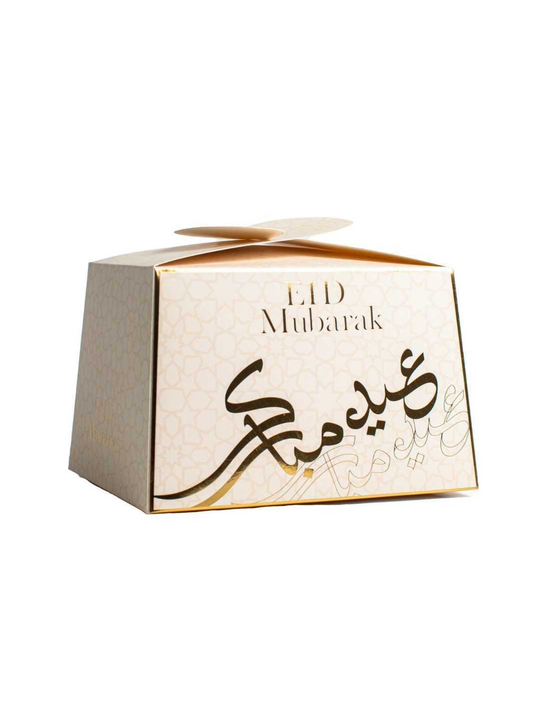Offrez des gourmandises à vos proches, familles, voisins dans une boite élégante estampillée Eid Mubarak.