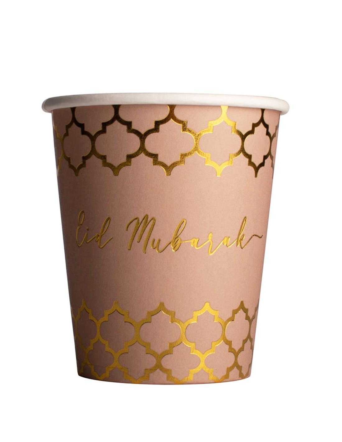 Pack de 6 gobelets en carton EID MUBARAK pour apporter une touche chic et tendance à votre décoration pour l'Aïd.